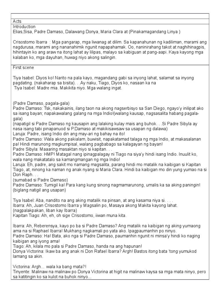 Relihiyoso talaga akong tao dati noong bata pa ako. Si Kapitan Tiyago ay magkaibigan sa tatay ni Ibarra. Kakarating lang niya mula sa Europa.